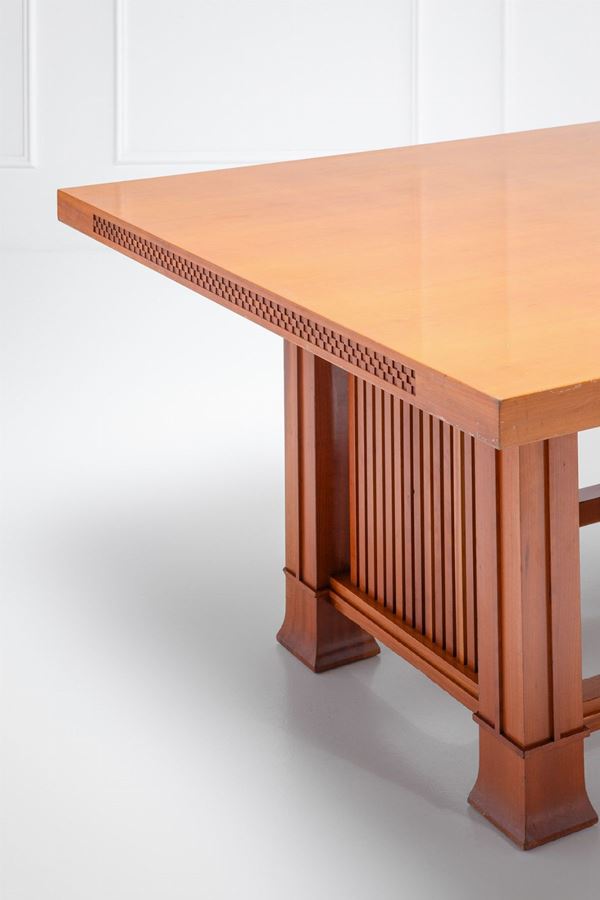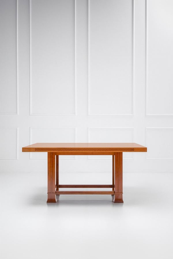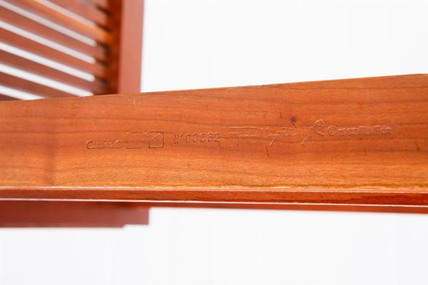 Marchio del produttore, numero di serie, nome del designer e data incisi sul legno: Cassina n. 00662 Frank Lloyd Wright 1992.