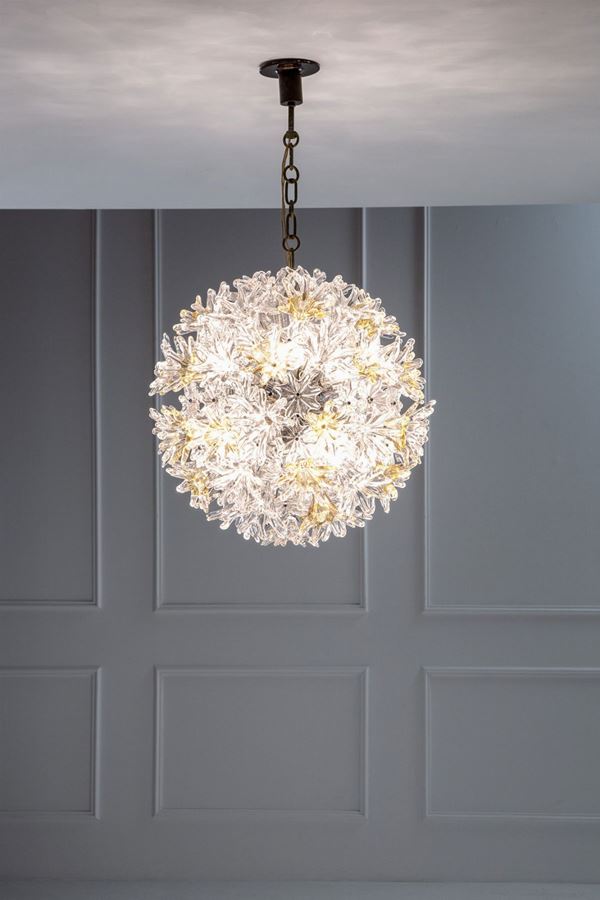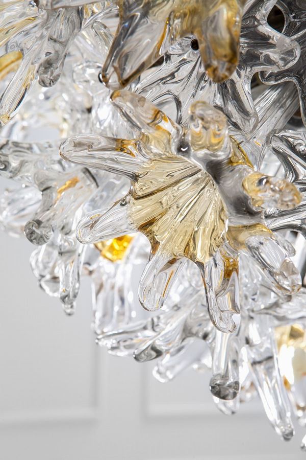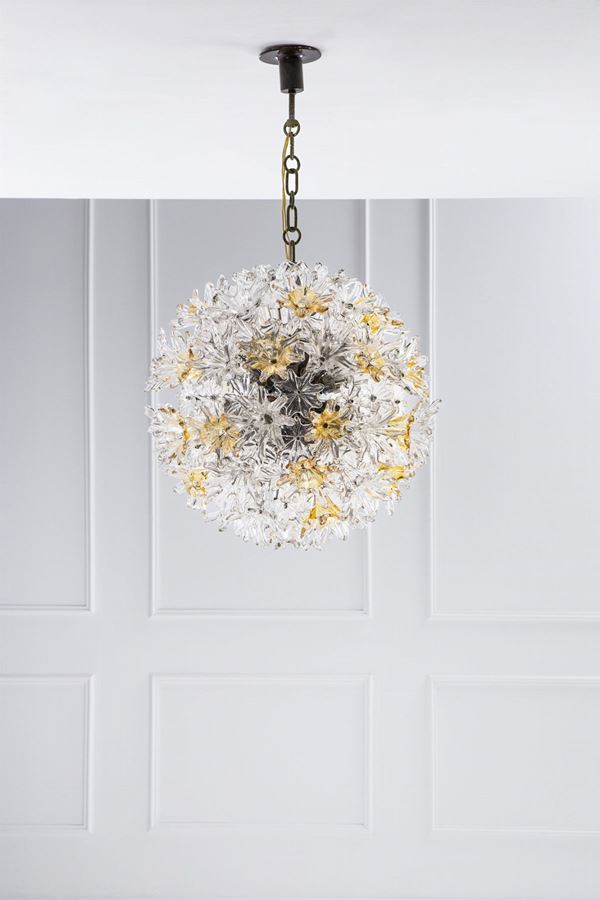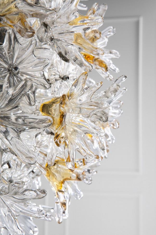 Cristallo trasparente e giallo ambra, metallo cromato.