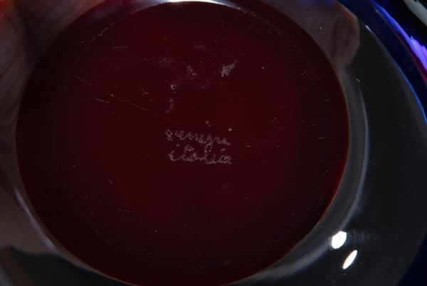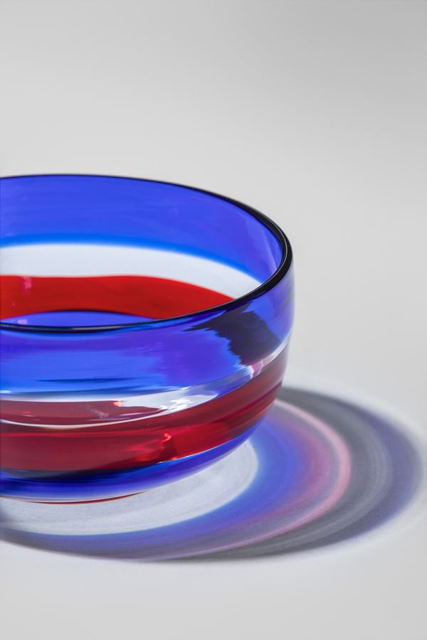Vetro soffiato cristallo con fasce orizzontali rosse e zaffiro.