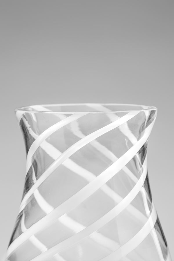 Vetro soffiato cristallo con canne bianco lattimo disposte a spirale.