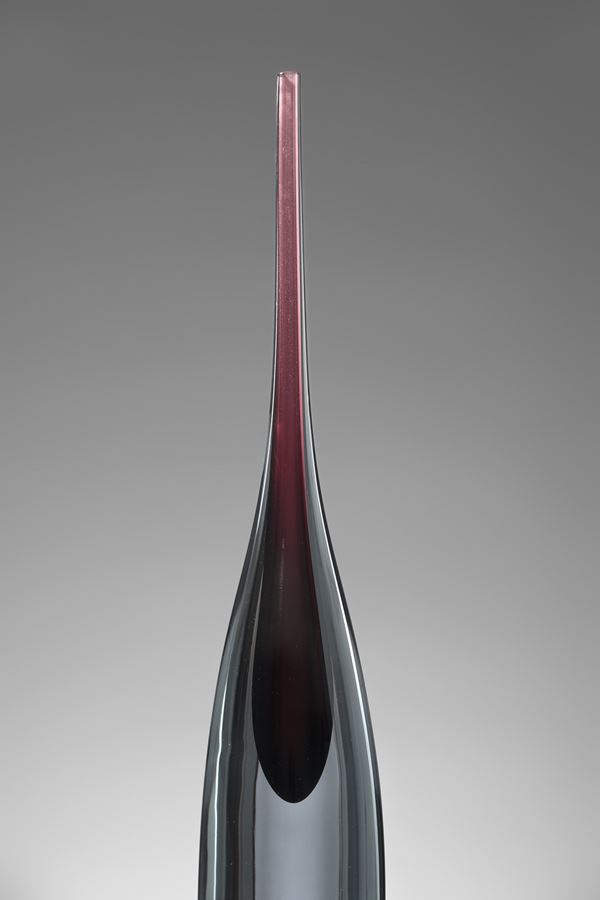 Vetro soffiato sommerso grigio talpa e rosso porpora.
