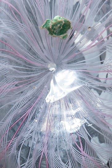 Vetro soffiato zanfirico a canne verticali lattimo e ciclamino.