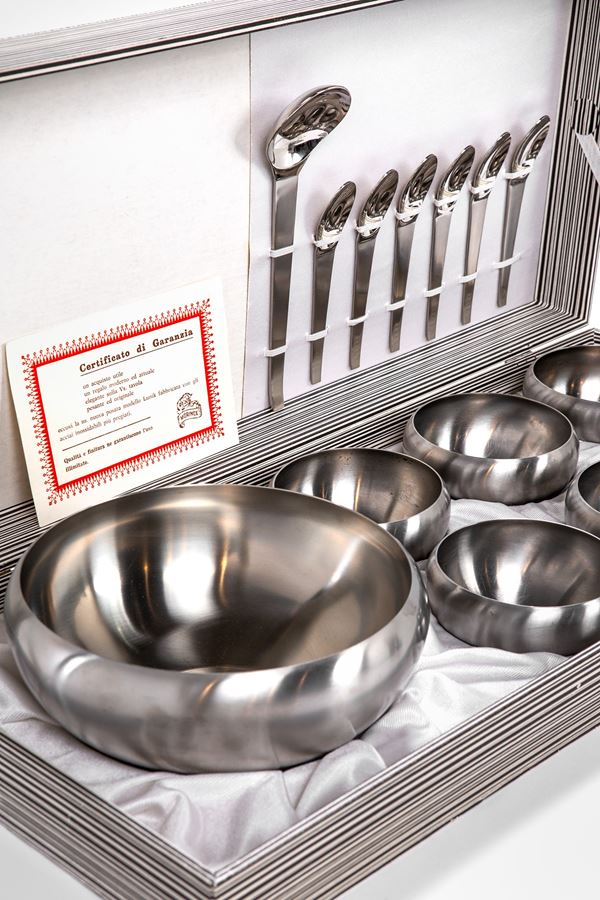 Servizio da macedonia: mestolo, 6 cucchiaini, ciotola e 6 coppette.