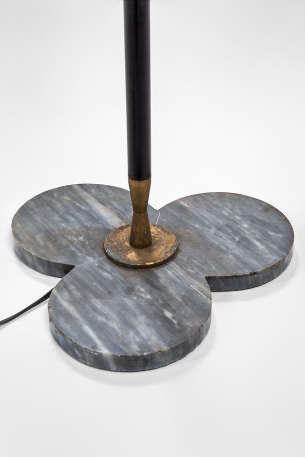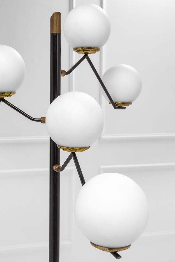 Metallo verniciato, ottone, marmo, vetro opalino satinato.