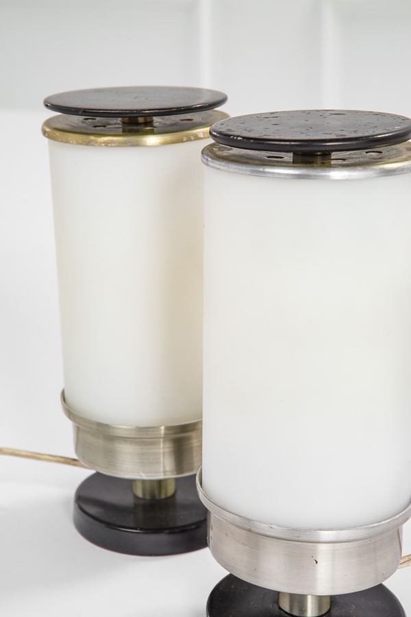 Metallo verniciato, metallo nichelato, vetro opalino.