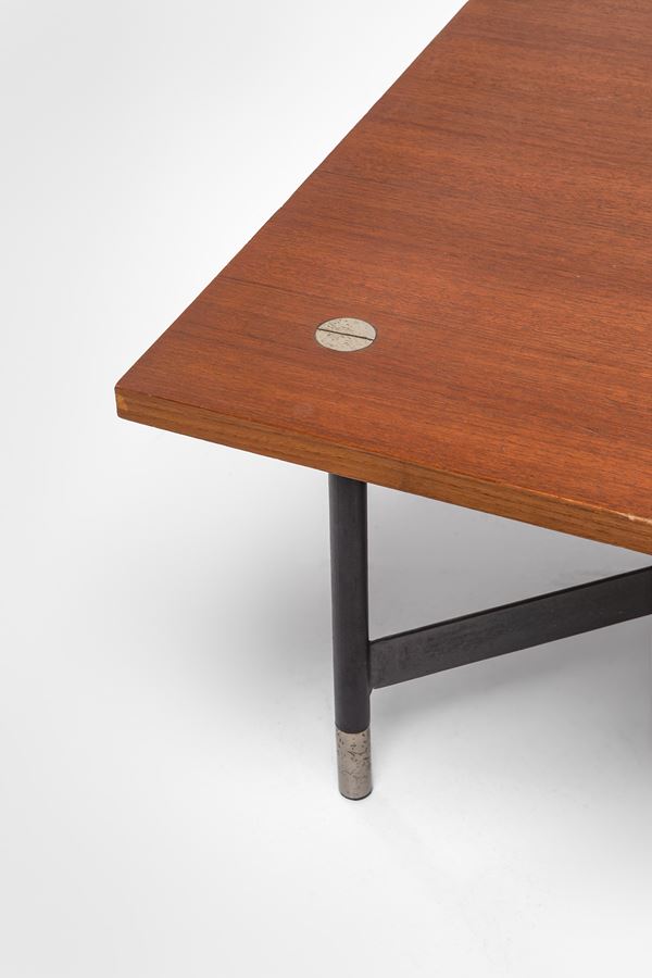 Metallo verniciato, ottone nichelato, legno impiallacciato.