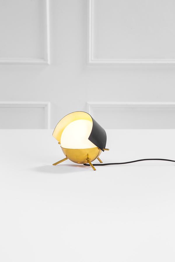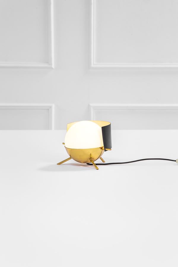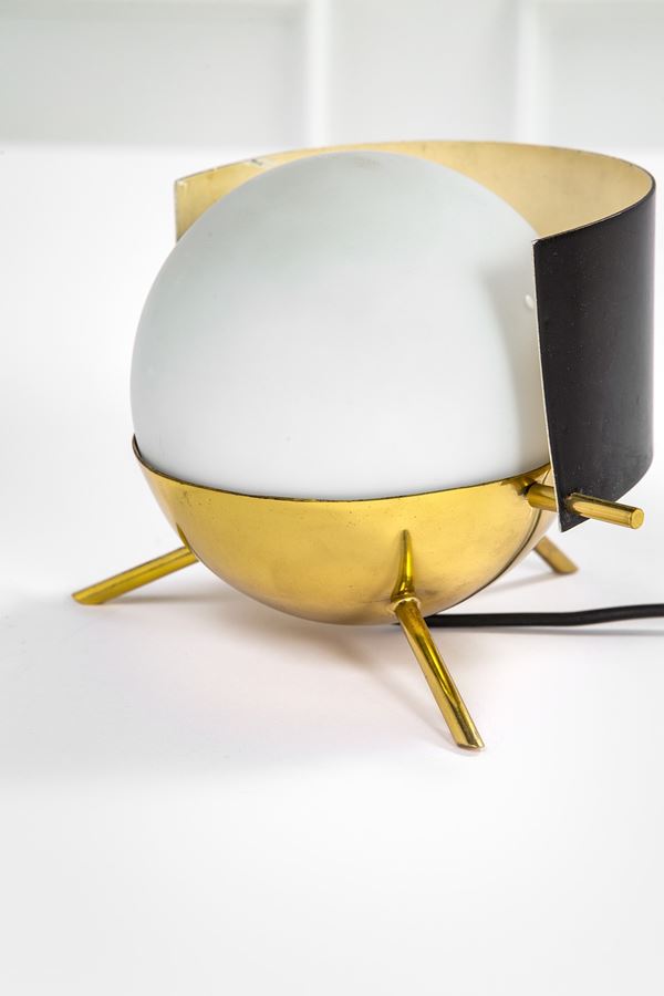 Metallo laccato, ottone lucido, vetro opalino satinato.