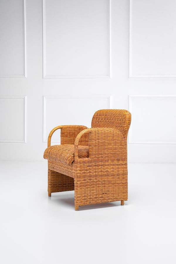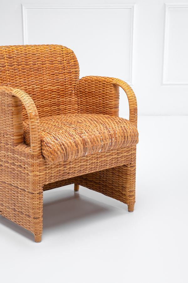 Struttura in rattan rivestito in tessuto di canna d'India naturale, poliuretano espanso (cuscino) rivestito in canna d'India naturale.