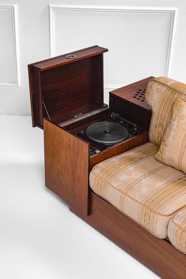 Divano attrezzato con vani contenitori e impianto stereo della serie Welcome