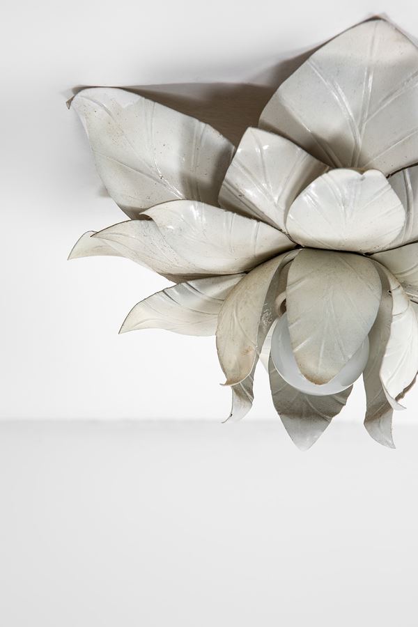 Elementi in metallo verniciato fitomorfi a formare un fiore.