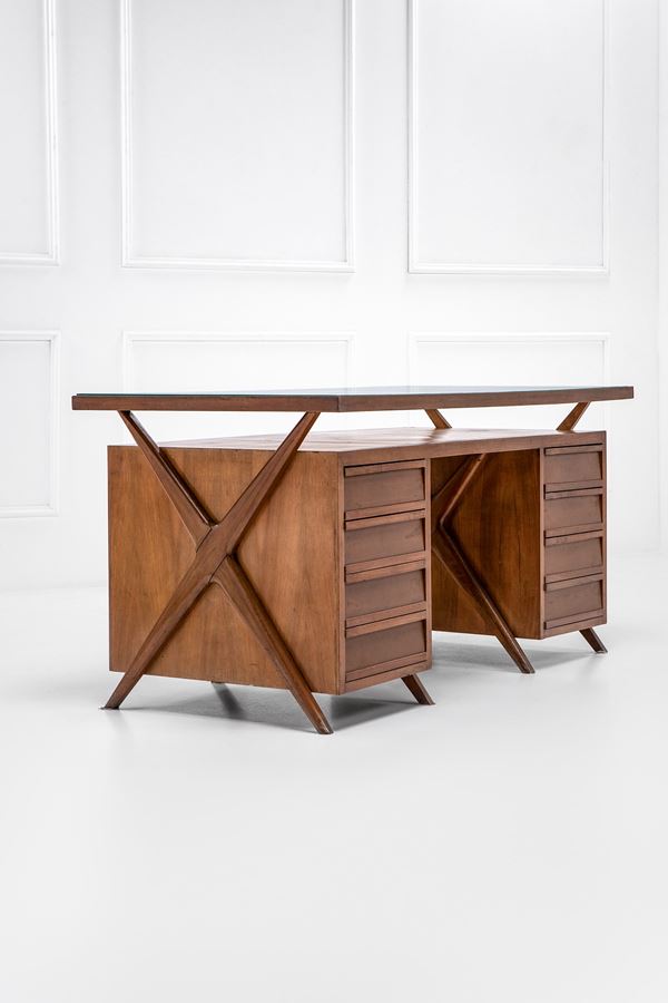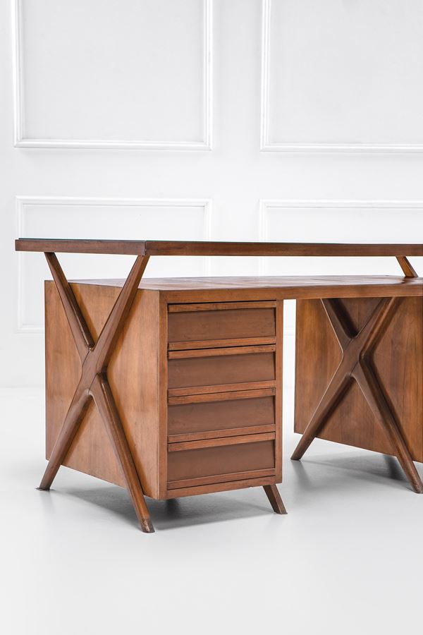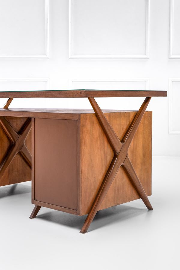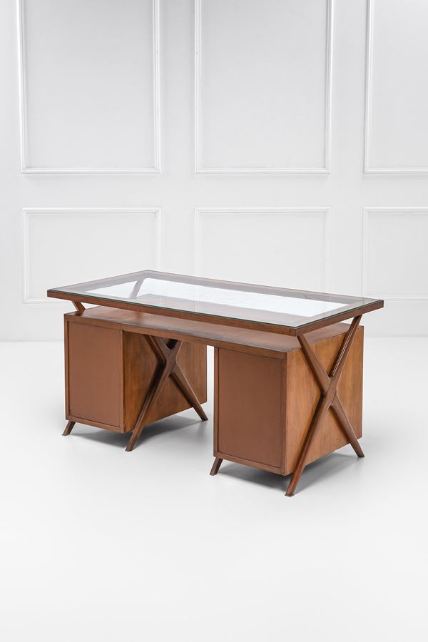 Legno massello sagomato, legno impiallacciato, cristallo.