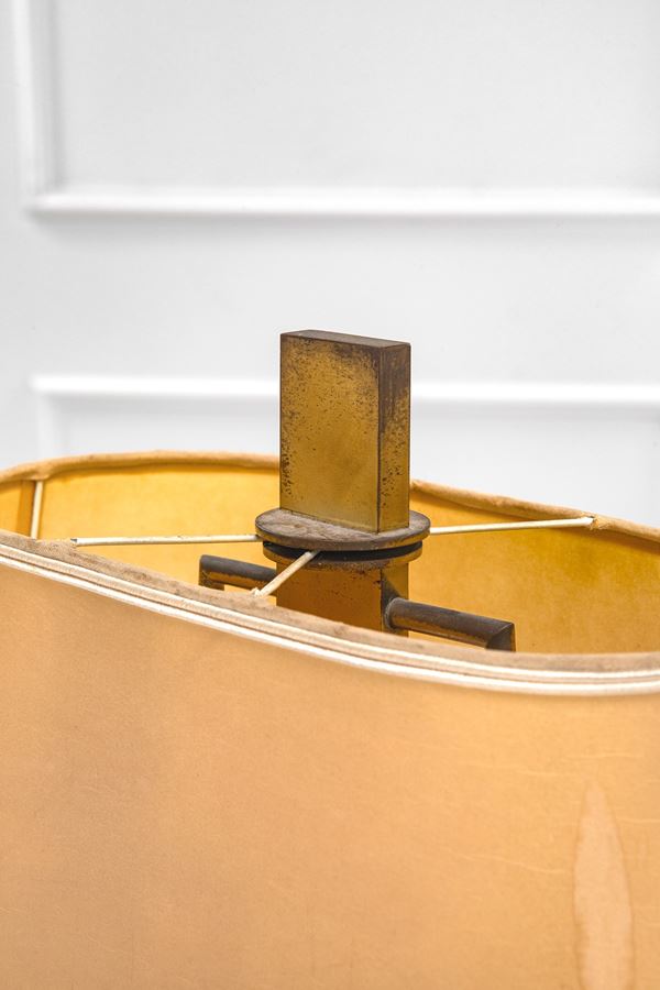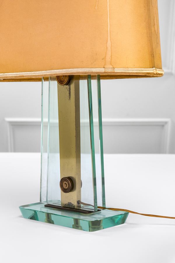 Ottone lucido, cristallo molato di forte spessore, tessuto.