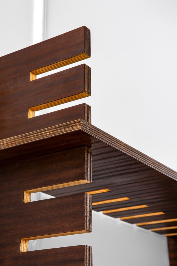 Elementi in legno compensato collegati da incastro continuo a pettine.