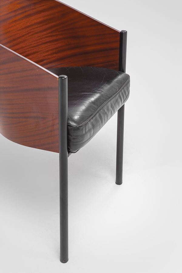 Metallo verniciato, legno curvato impiallacciato, pelle.