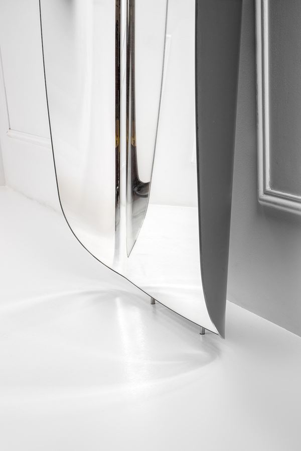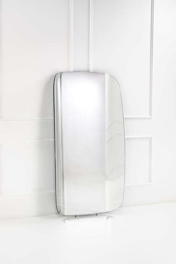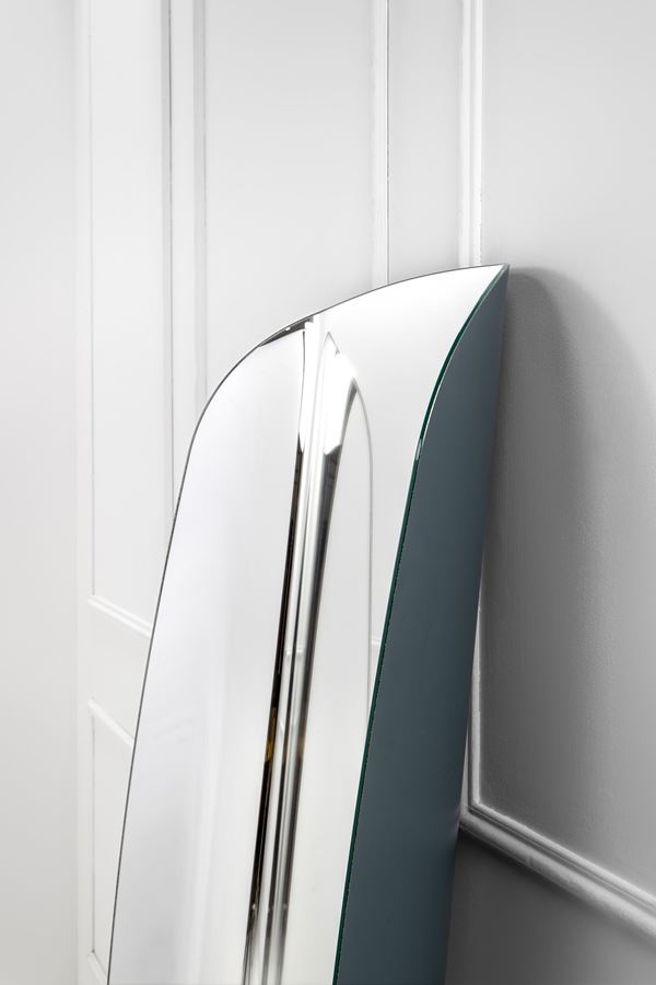 Lastra di cristallo extralight curvata, sagomata, molata e argentata.
