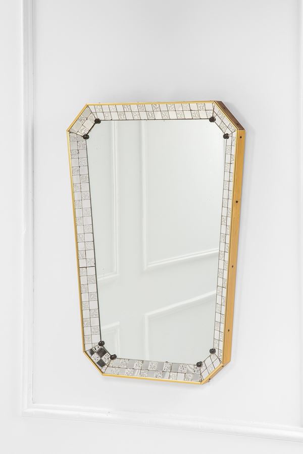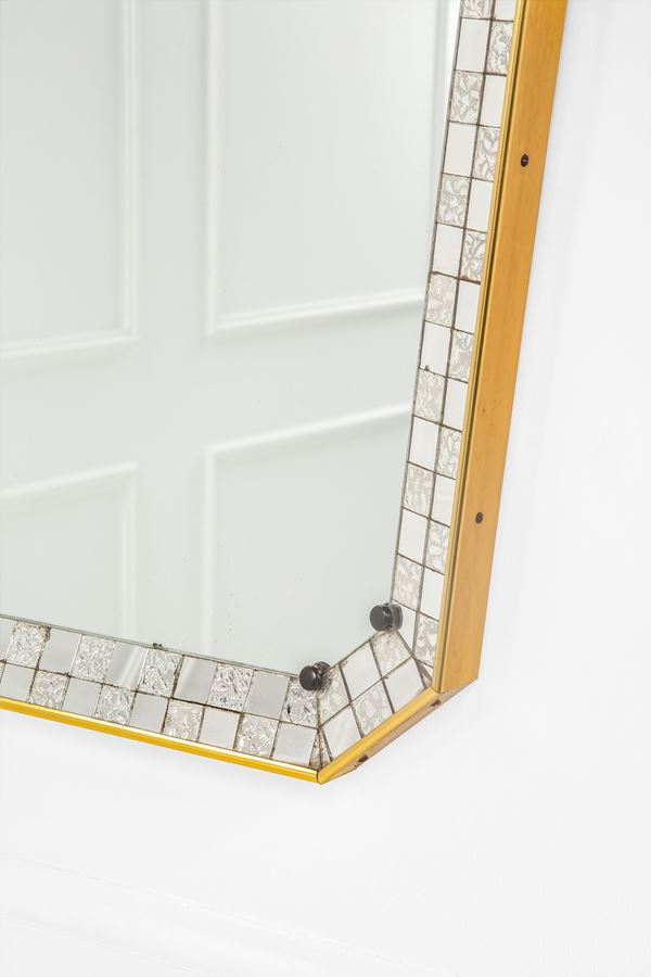 Tessere di vetro colorato specchiato, vetro specchiato, ottone.