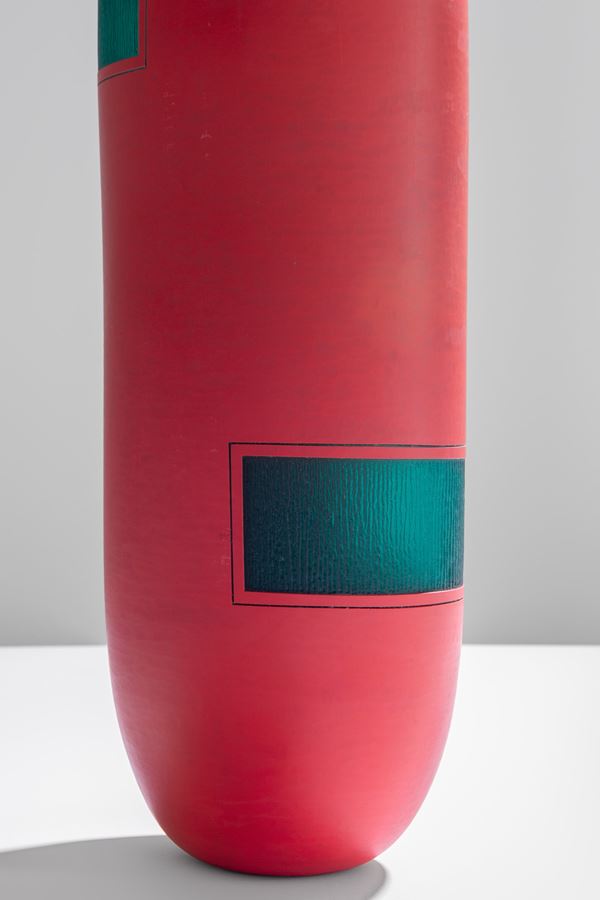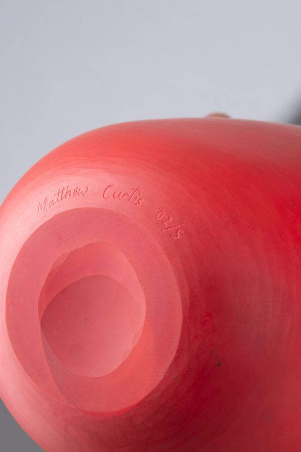 Vetro soffiato, superficie lavorata al tornio, dettagli incisi.