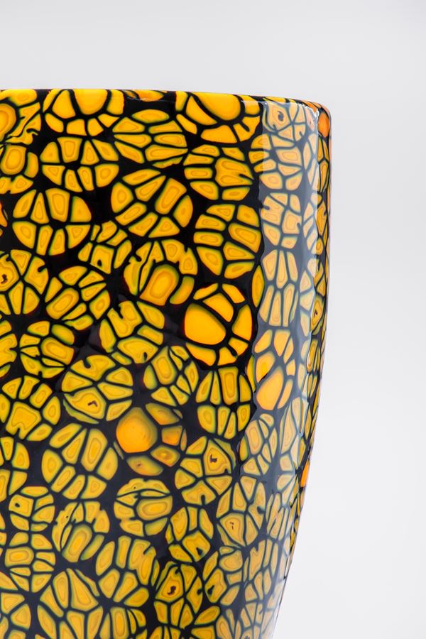 Vetro soffiato a mosaico nei colori giallo e nero.