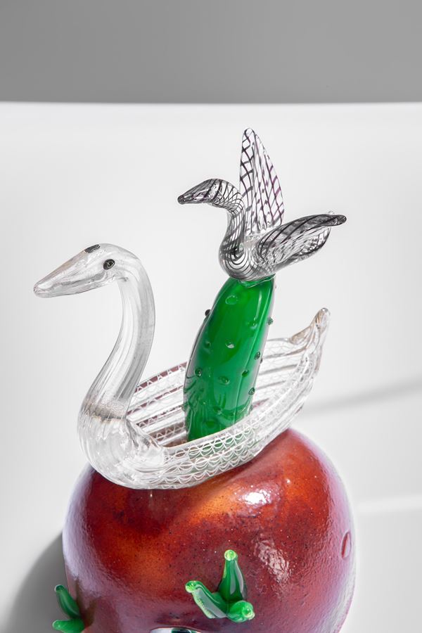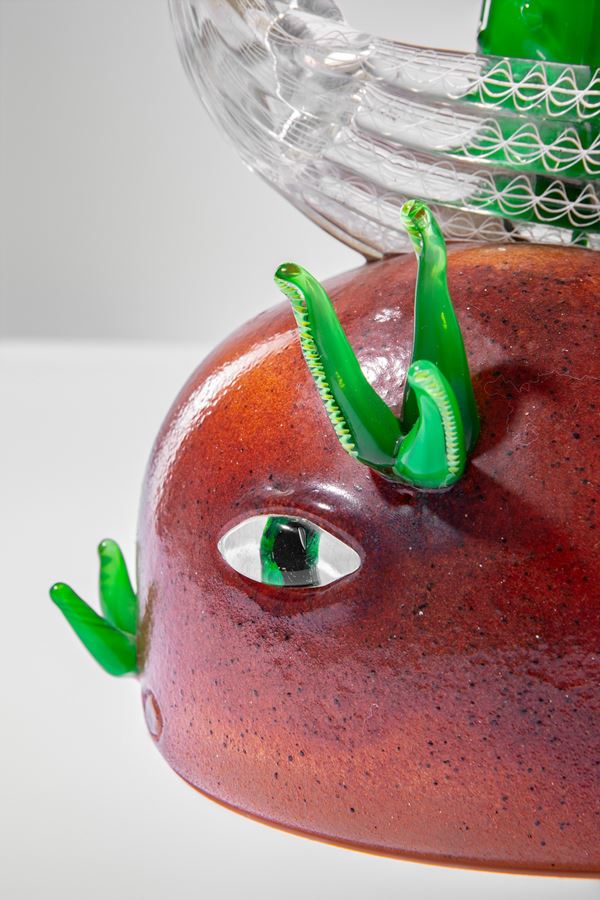 Vetro soffiato e vetro massello uniti a caldo.