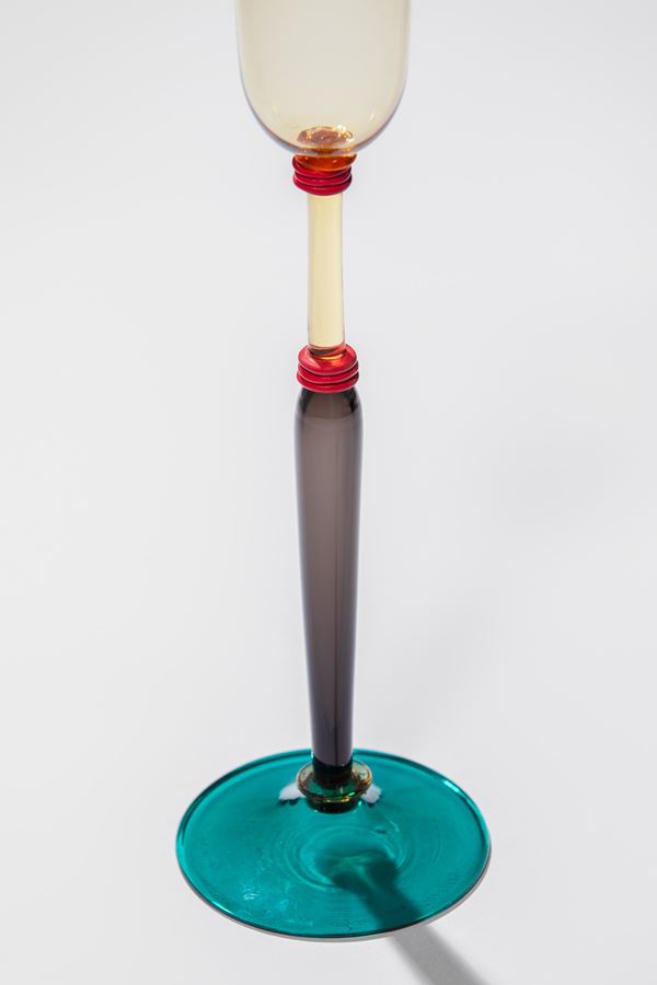 Vetro soffiato, gambo costituito da diverse porzioni unite a caldo.