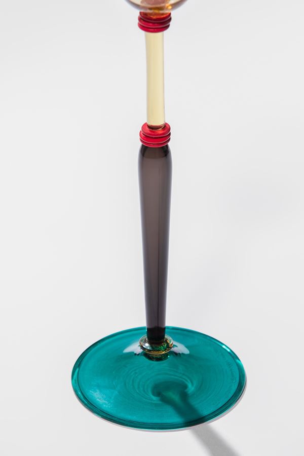 Vetro soffiato, gambo costituito da diverse porzioni unite a caldo.