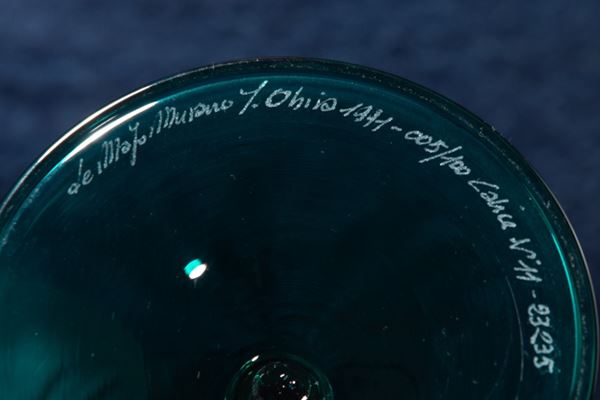 Firma incisa a punta "de Majo Murano Y. Ohira 1991 005/100 calice n. 11 - 23235".