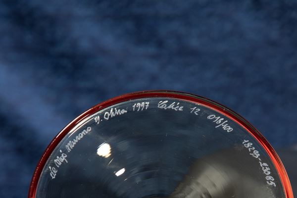 Firma incisa a punta "de Majo Murano Y. Ohira 1997 calice 12 - 018/100 18293 - 23085".