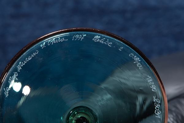 Firma incisa a punta "de Majo Murano Y. Ohira 1997 calice 2 038/100 18290 - 23031".