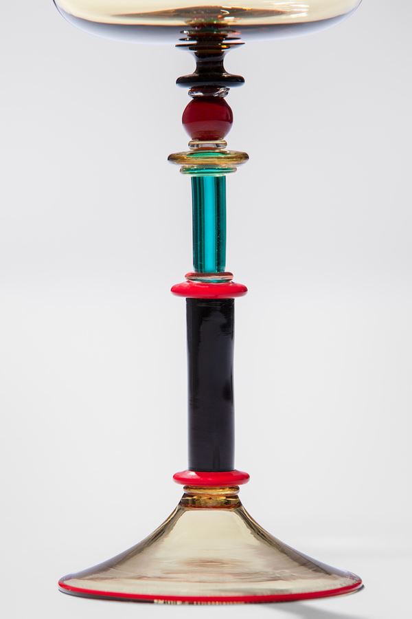 Vetro soffiato, gambo costituito da diverse porzioni unite a caldo.