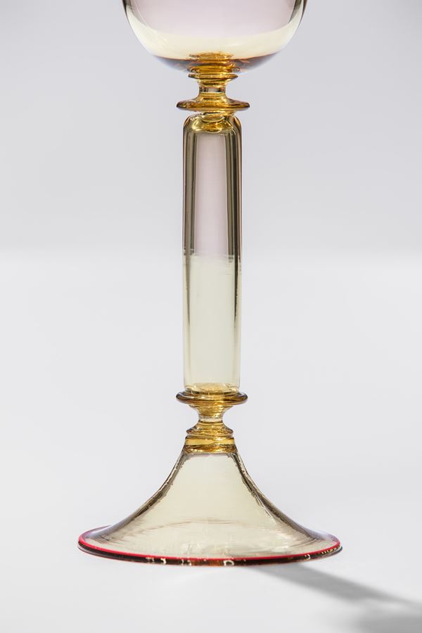 Vetro soffiato, gambo costituito da diverse porzioni unite a caldo.