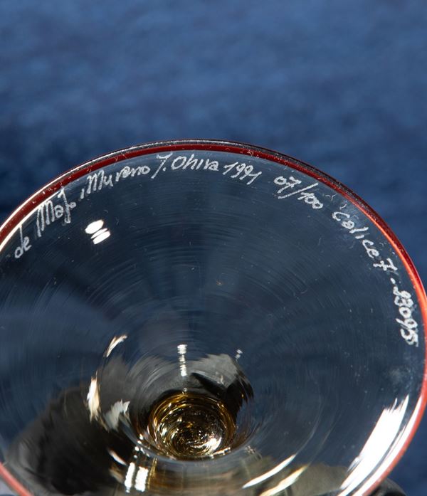 Firma incisa a punta "de Majo Murano Y. Ohira 1991 07/100 calice 7 - 23095".
