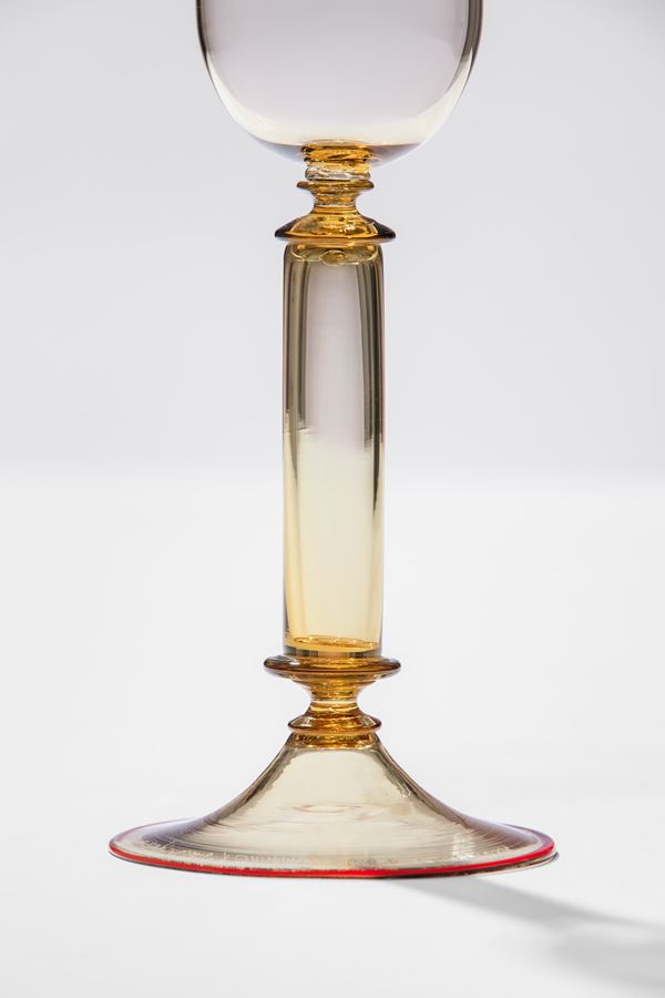 Vetro soffiato, gambo costituito da diverse porzioni unite a caldo.