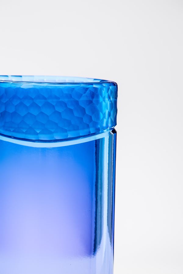 Vetro soffiato sommerso in cristallo con bordo inciso.