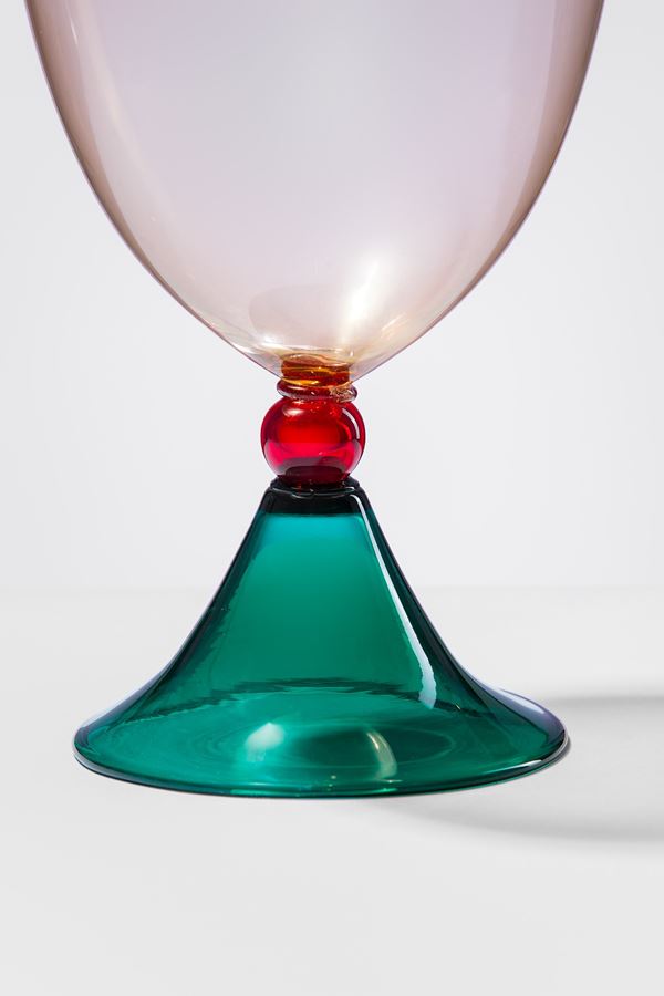 Vetro soffiato nei colori fumè, rosso e verde.