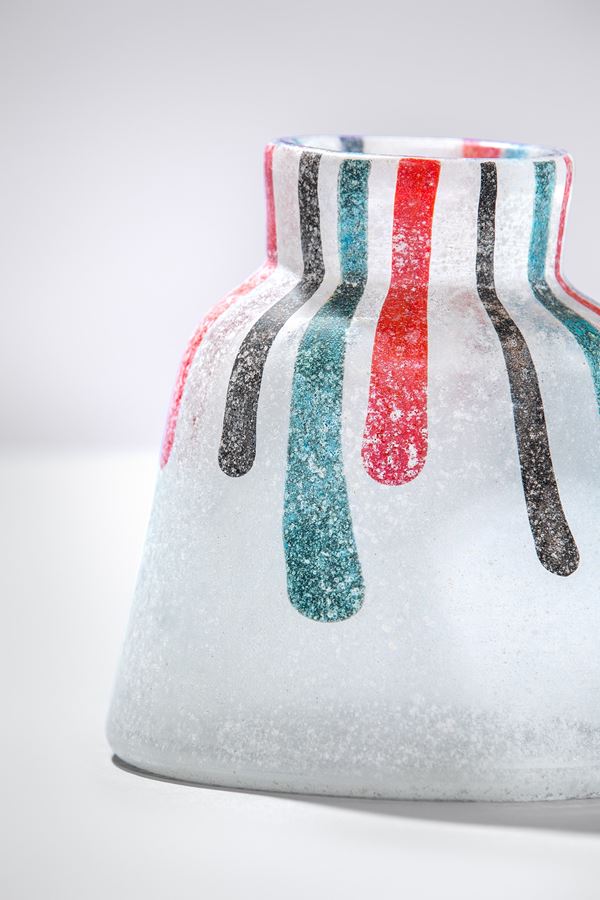 Vetro soffiato effetto neve con canne policrome.