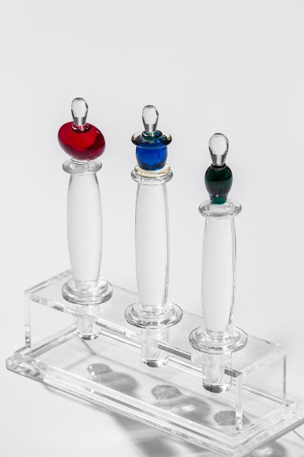 Collezione Venezia e l'Oriente, Bottiglie con tappi gioiello di Y. Ohira, Vetreria de Majo Murano divisione Mythos, Catalogo di produzione, 1987, p. 28.