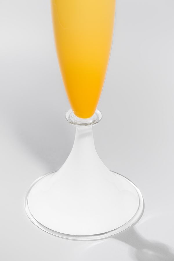 Vetro soffiato, incalmo, nel colore giallo con base in vetro lattimo