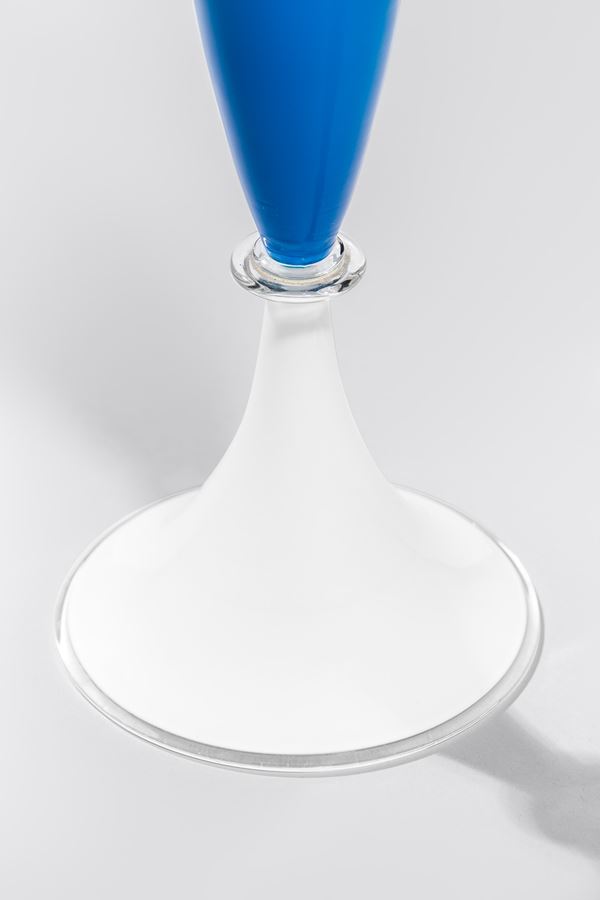 Vetro soffiato, incalmo, nel colore acquamare con base in vetro lattimo