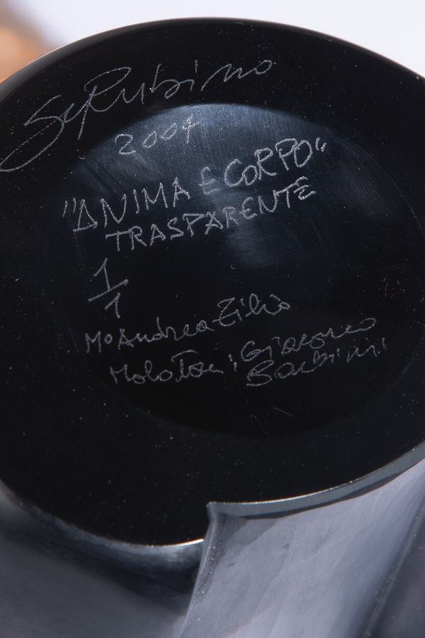Firma incisa a punta "S. Rubino 2004 Anima e Corpo trasparente 1/1 M. Andrea Zilio Molatore Giaco
