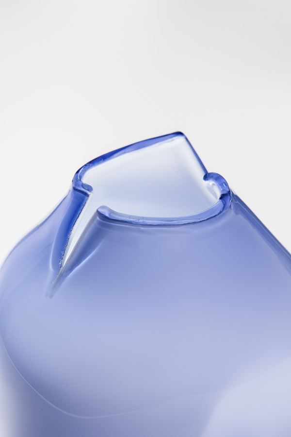 Vetro soffiato incamiciato nei colori lattimo e azzurro.