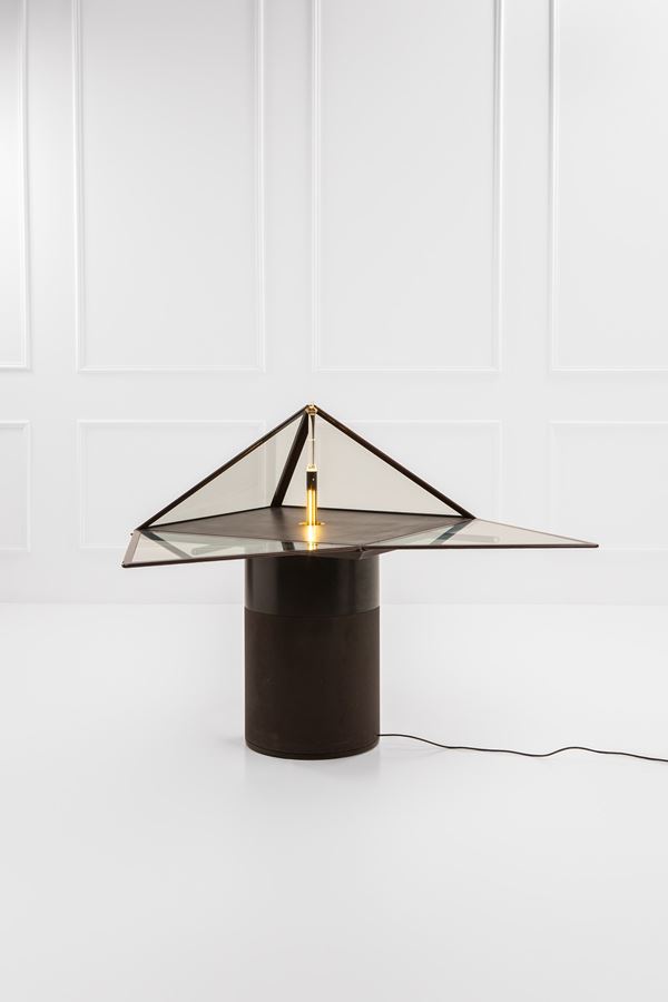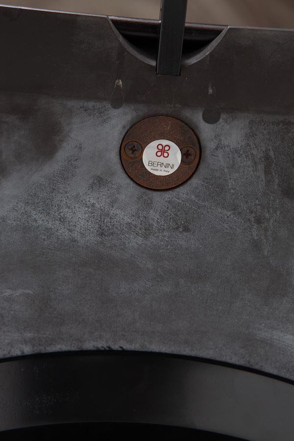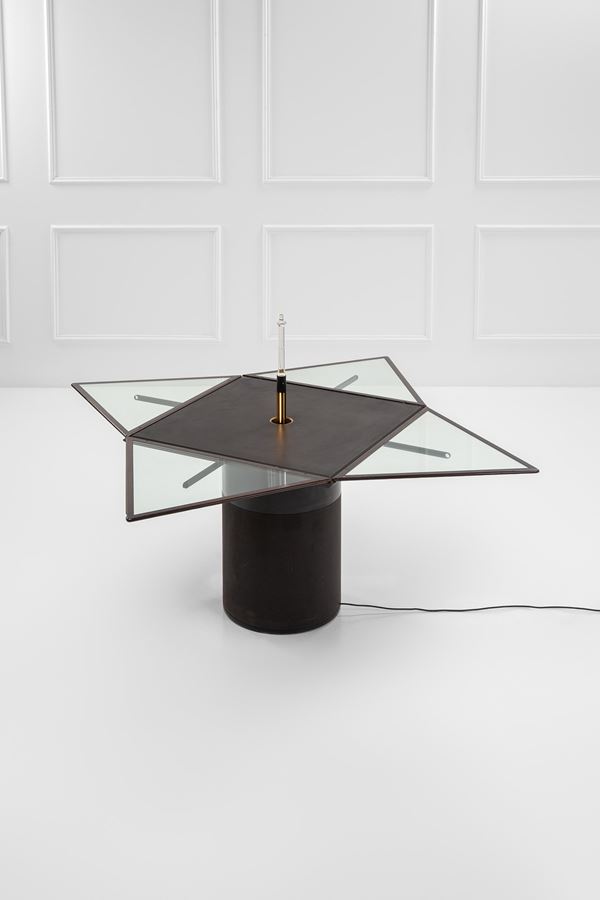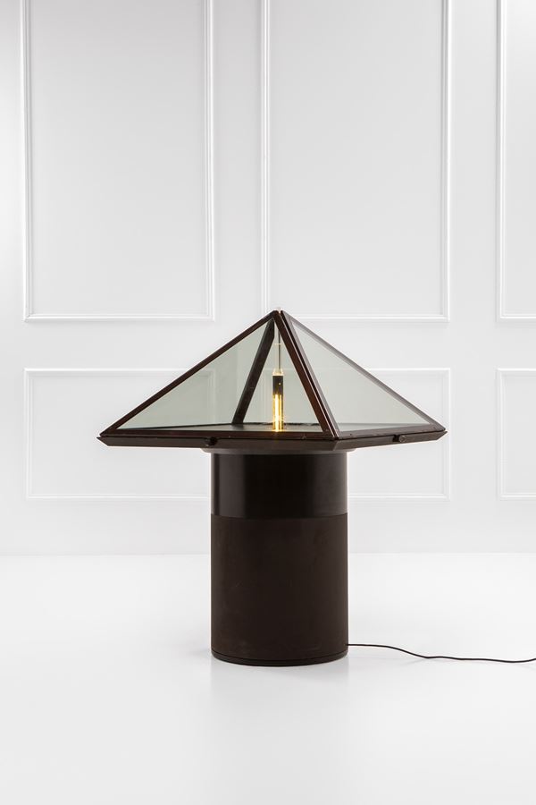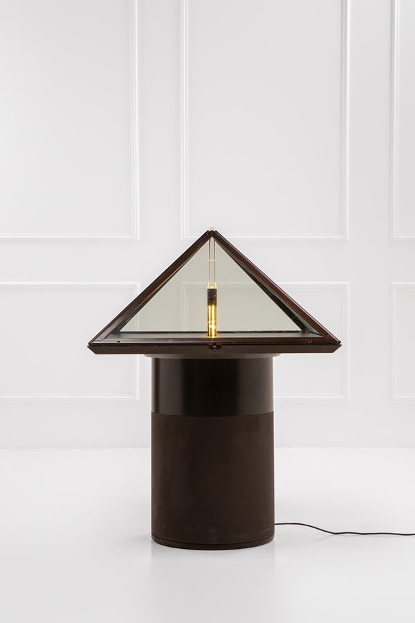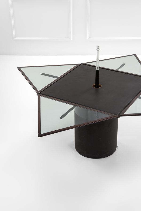 Legno tinto, legno laccato, metallo laccato, vetro trasparente.