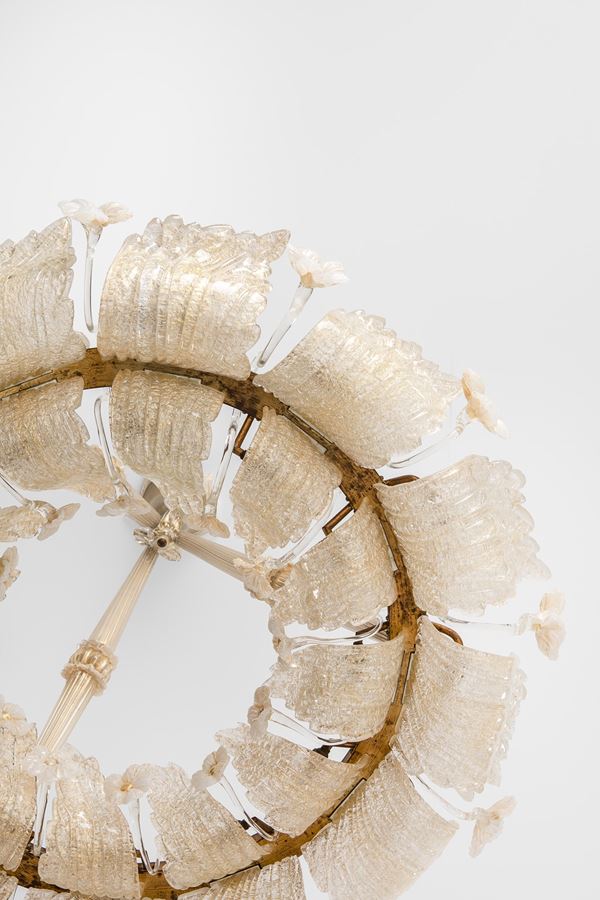 Vetro di Murano con inclusione di foglia d'oro, ottone.