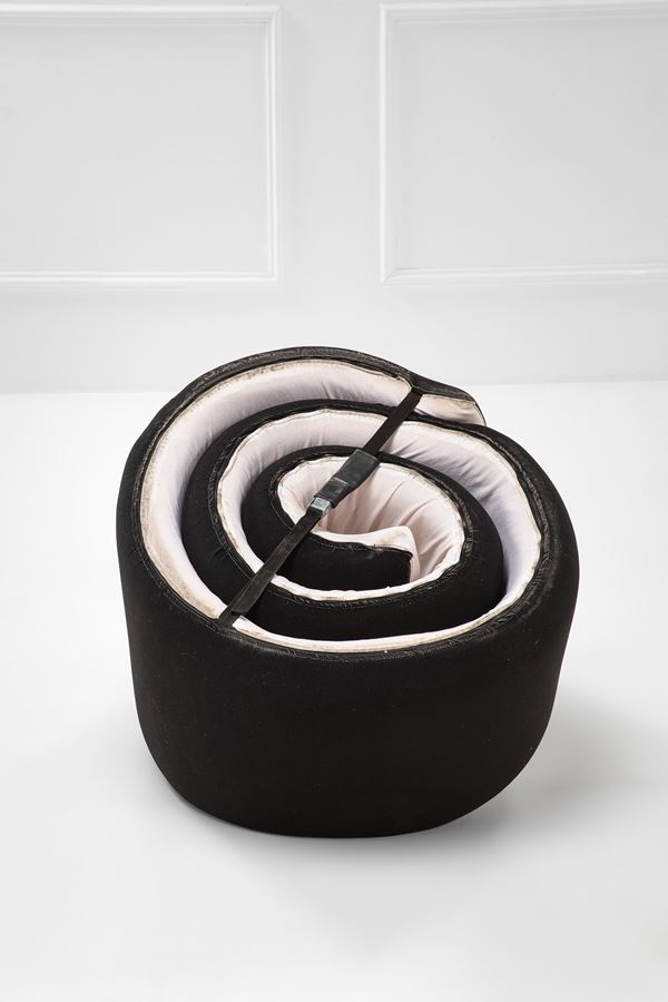 Struttura in metallo rivestita in schiuma e tessuto elastico.