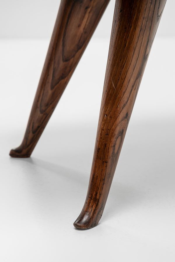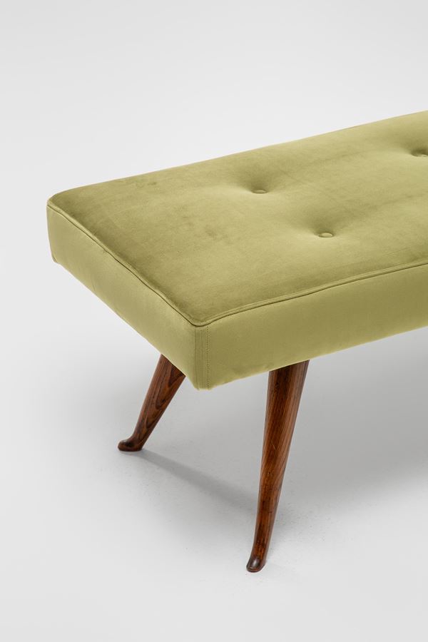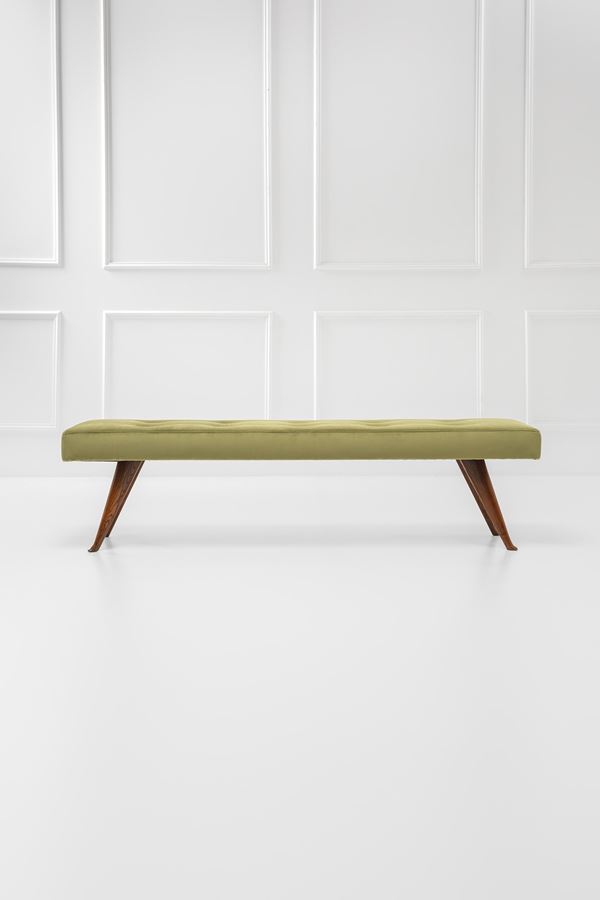 Legno tornito e sagomato, tessuto capitonné.