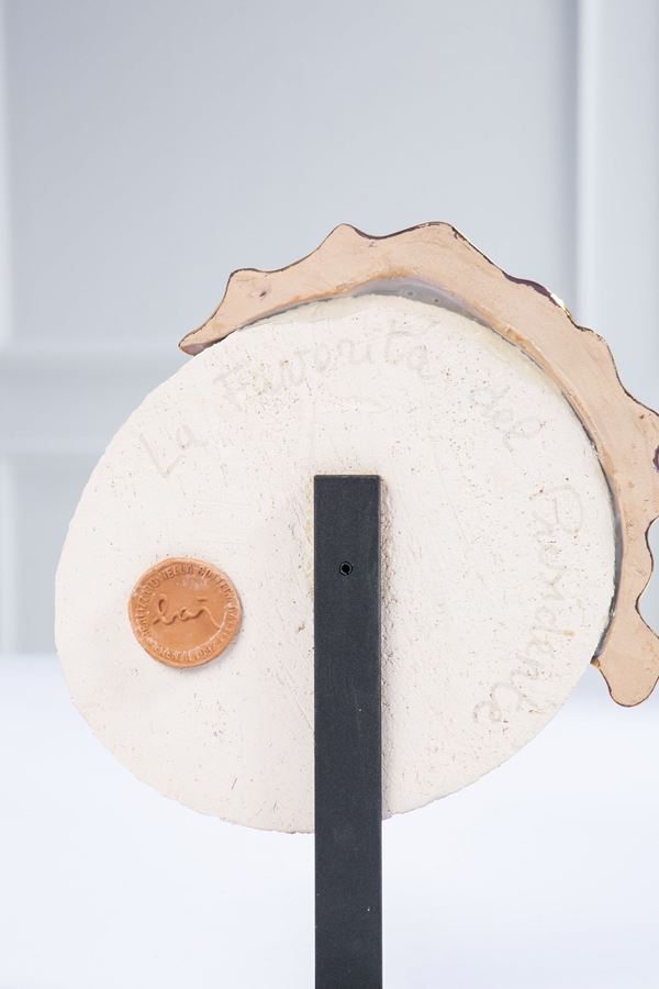 Sul retro titolo e medaglione in ceramica con nome esecutore, nome dell'artista e data.