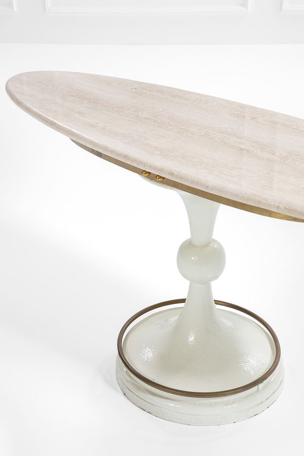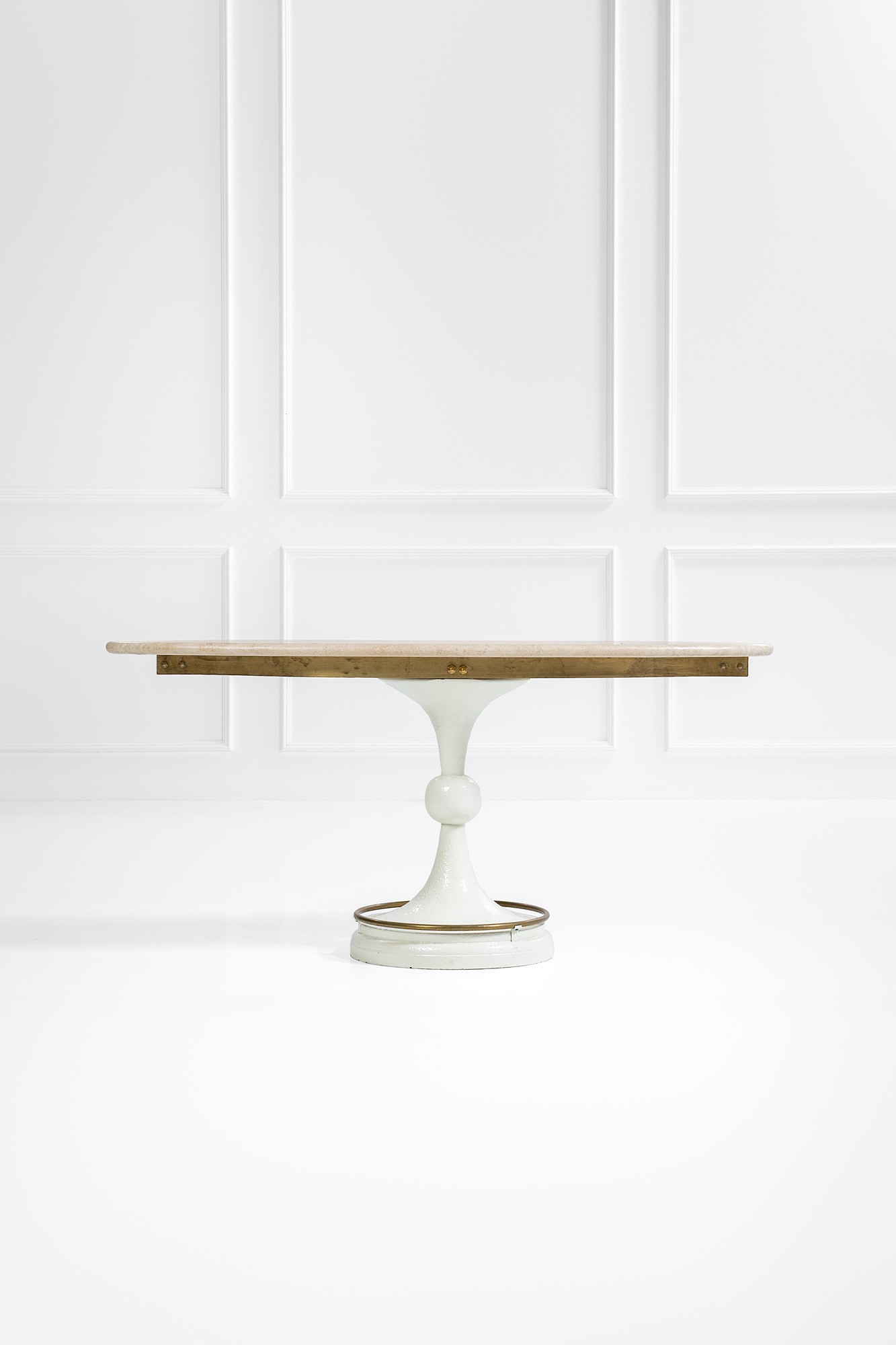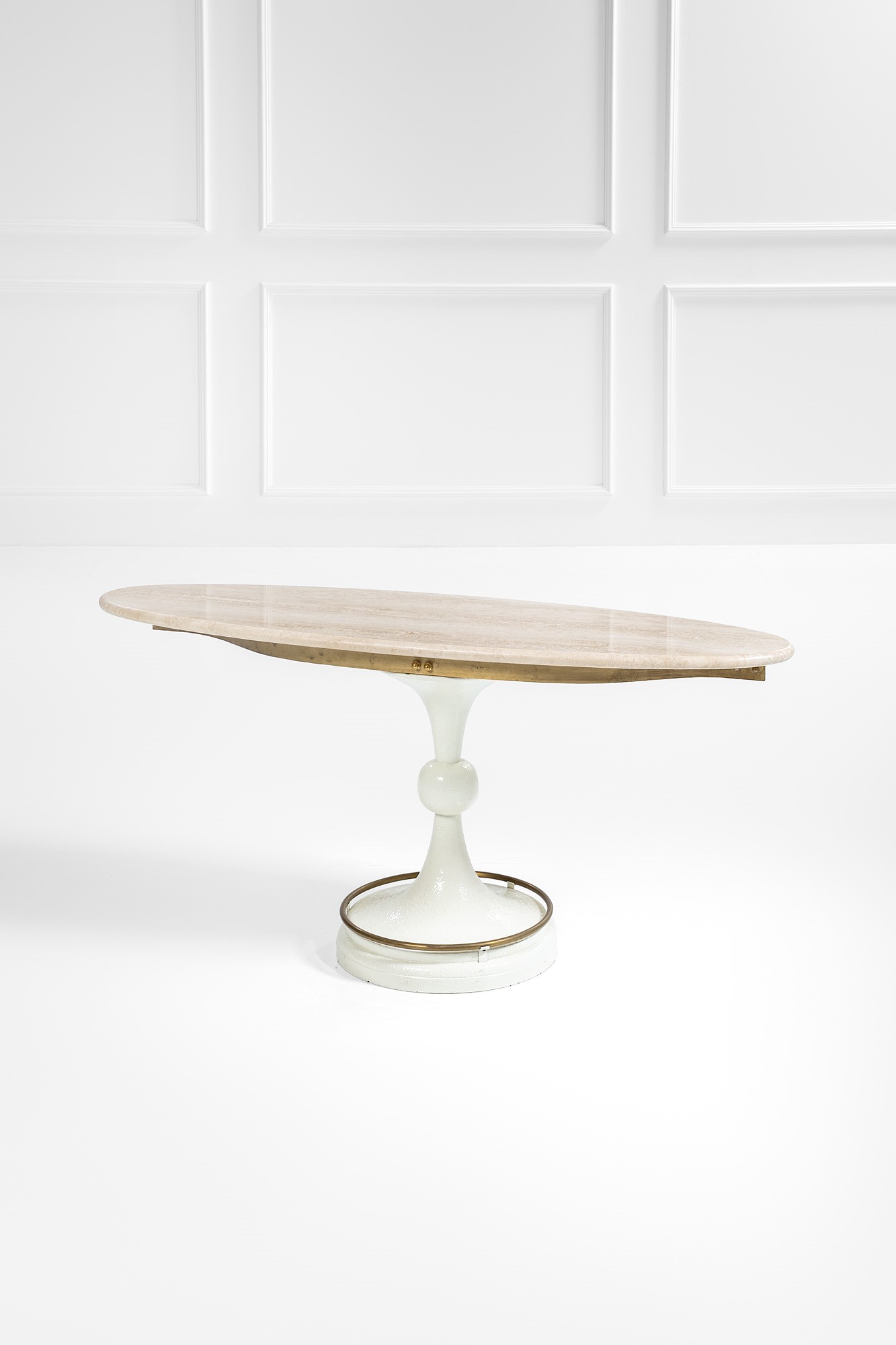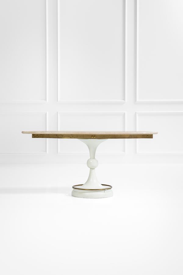 Metallo laccato, ottone, travertino.