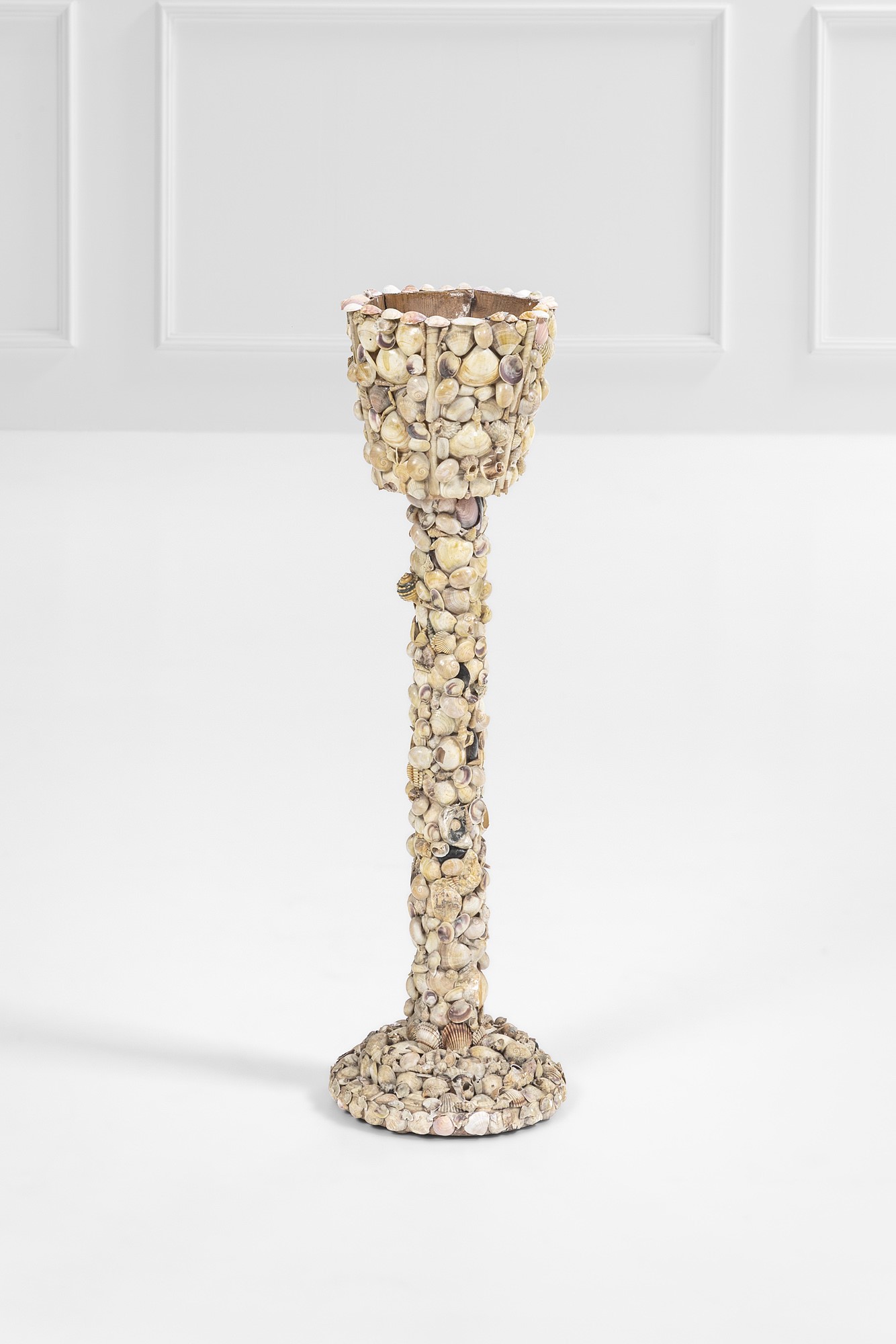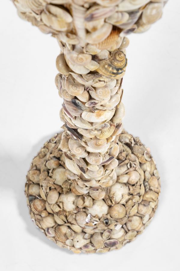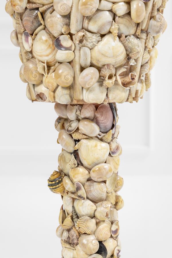 Legno rivestito con conchiglie.