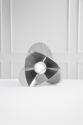 Elementi di acciaio lucido assemblati con speciali rivetti a doppia testa.