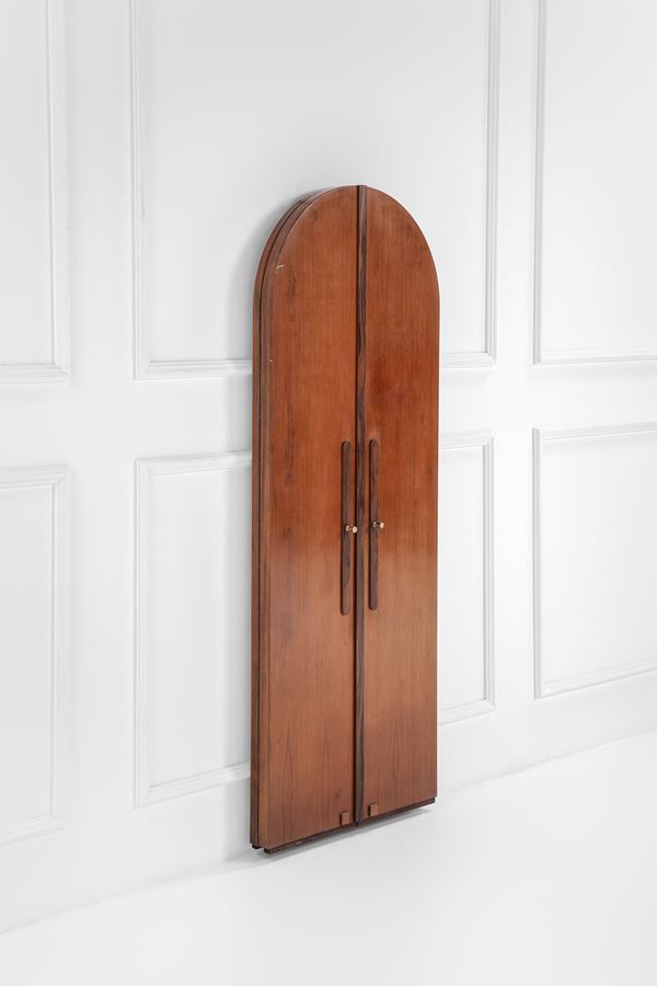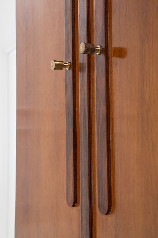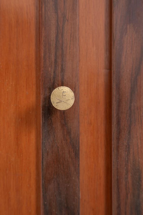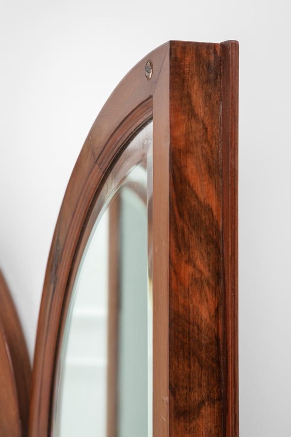 Legno di noce, vetro specchiato, ottone.