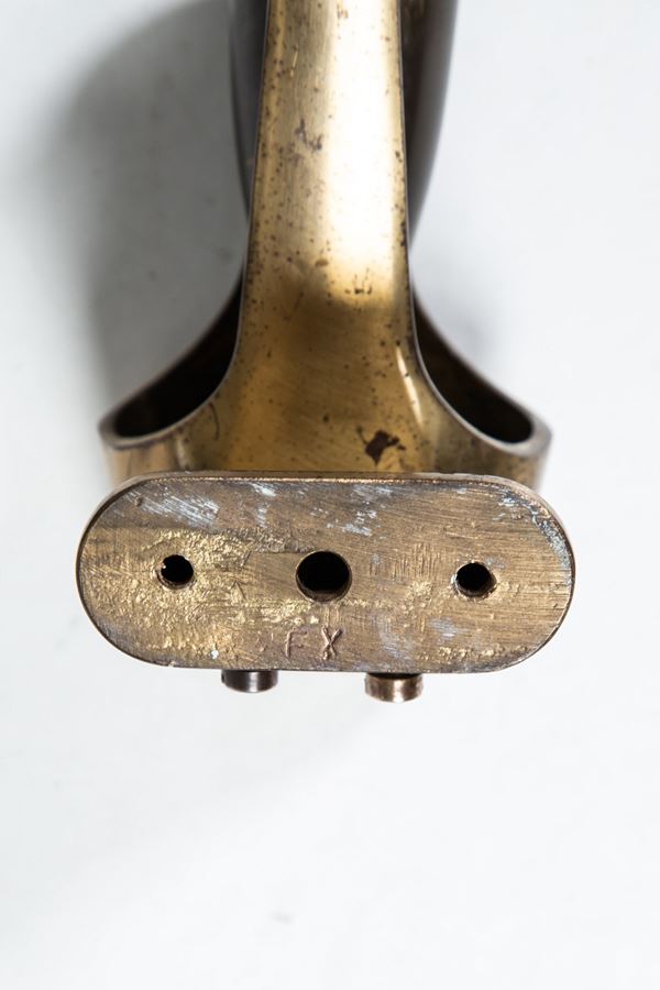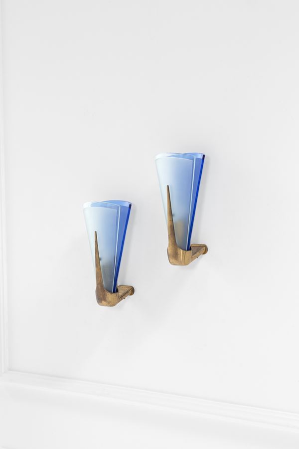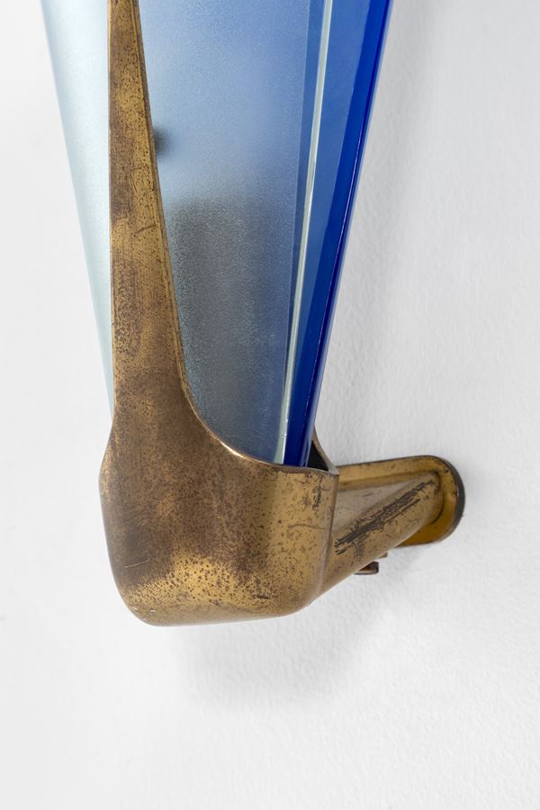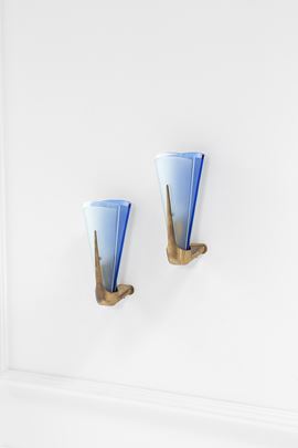 Vetro curvato satinato, vetro curvato colorato, ottone.